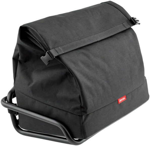 The Benno Utility Front Tray Bag can carry and secure a variety of different loads. Easy installation on the Utility Tray Rack with just four Velcro tabs, the bag Its unique, versatile design gives you multiple options: Close the top and fold it over onto the Velcro strips, roll the top and secure the plastic fastener or cuff the sides and use it like an open basket.