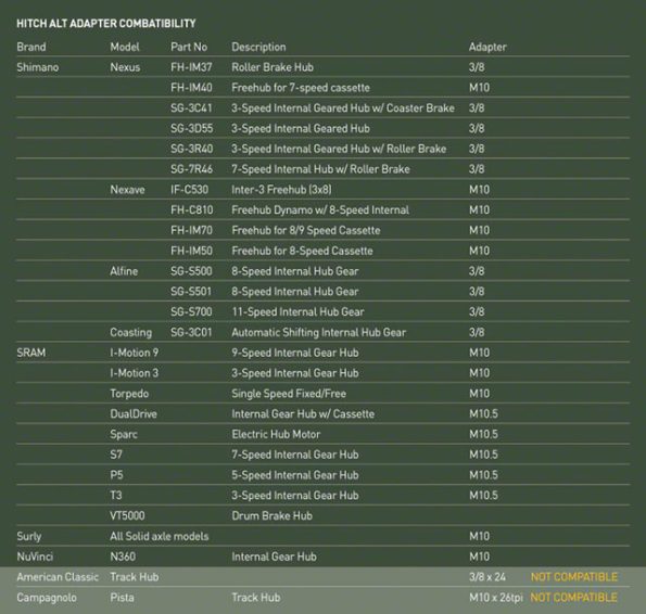 Surly hitch system is designed to be as universal as possible. Regardless of the configuration of your bike frame, our hitch will likely fit. It doesn’t clamp to the bike’s frame tubes. Instead, it attaches using a proprietary axle skewer or thread-on axle nuts. The Surly Trailer Hitch works with full-suspension frames, disc brakes, rear racks and fenders. It adjusts to accommodate hub widths from 120mm–145mm and allows you to align the centerline of the trailer on the centerline of the bike. It will work with bikes that have wheels as small as 20” and as large as 29” while keeping the bed level with the ground. This is especially important when you are hauling long items that hang off the back of the trailer (lumber, tubing, ladders, etc.).