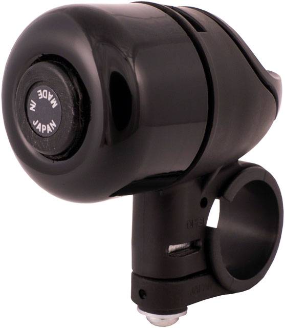 The Omnibell has an adjustable band clamp and features an ingeniously designed dinger that can be rotated to any position.