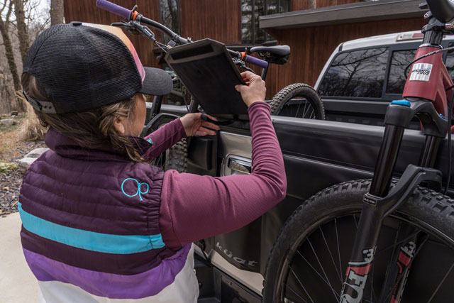 The T3 Tailgate Pad is available in Mid-Size (5 bike capacity) and Full-Size (6 bike capacity) to match your size of truck. The 2-bike size offers partial tailgate coverage when rolling solo or in pairs. Adjust the T3 to fit your tailgate then customize to carry almost any type of bike, from XC race rigs to full-power eMTBs.