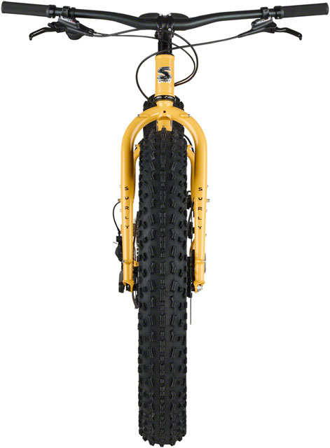 - Large volume Surly Molenda Tires on 24 x 100mm Surly Clown Royal Rims creates footprint large enough to float over unpredictable terrain