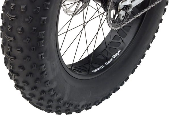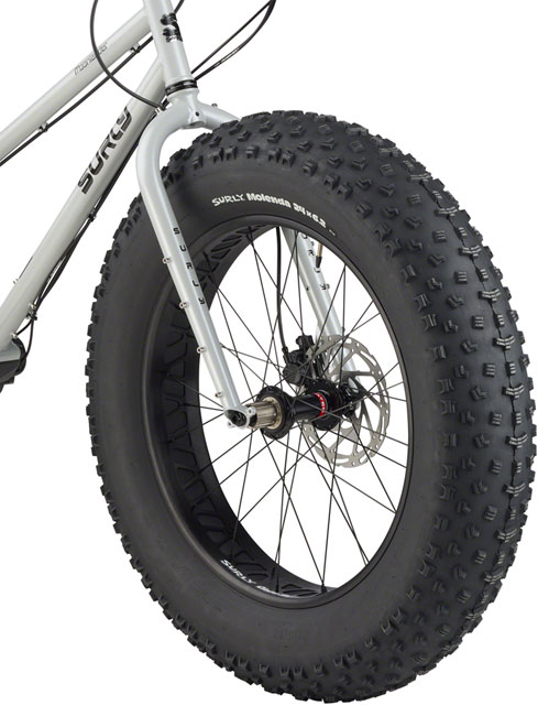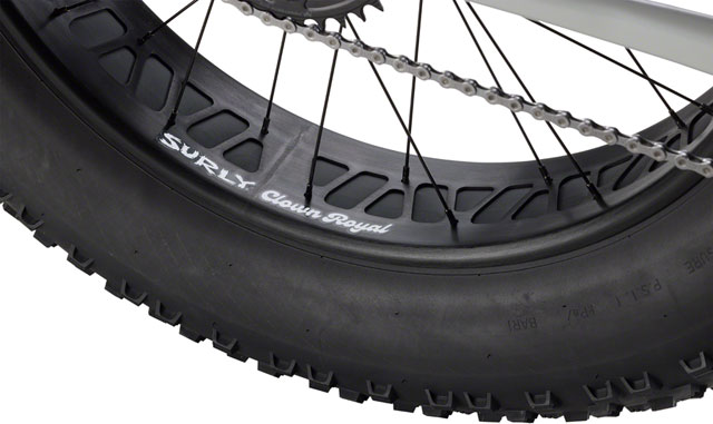 - Large volume Surly Molenda Tires on 24 x 100mm Surly Clown Royal Rims creates footprint large enough to float over unpredictable terrain