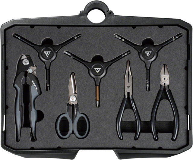 A highly mobile trolley tool station with 5” wheels for ease of use. The 7 tool compartments contain 48 professional-grade bike tools. For better stability, the wheelbase can easily be pulled out to extend the footprint. The push-button lift handle opens tool trays for quick and easy repairs.