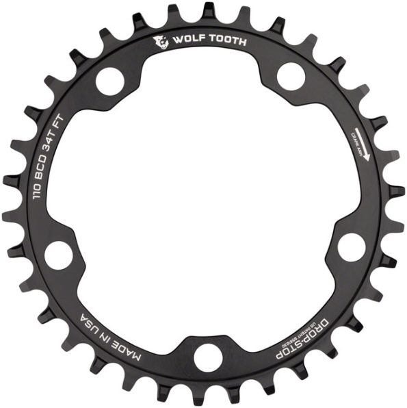 Wolf Tooth 110 BCD Cyclocross and Road Chainring – 34t, 110 BCD, 5-Bolt, Drop-Stop, 10/11/12-Speed Eagle and Flattop Compatible, Black