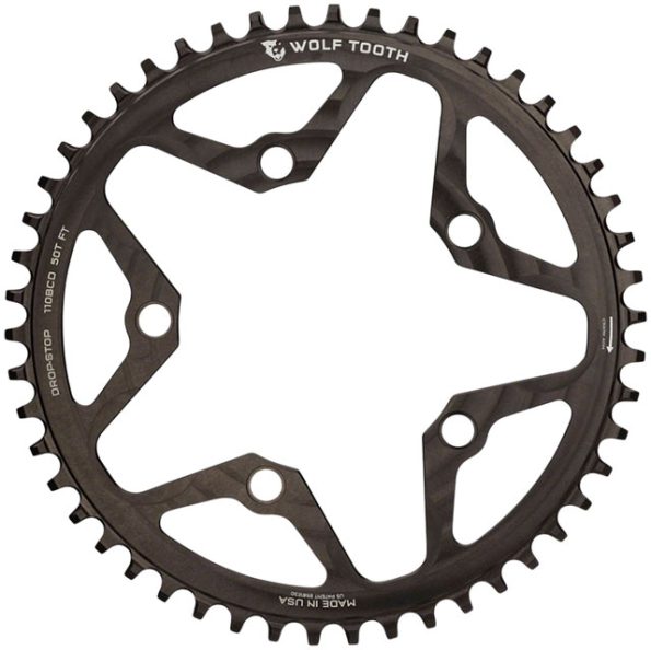 Wolf Tooth 110 BCD Cyclocross and Road Chainring – 50t, 110 BCD, 5-Bolt, Drop-Stop, 10/11/12-Speed Eagle and Flattop Compatible, Black