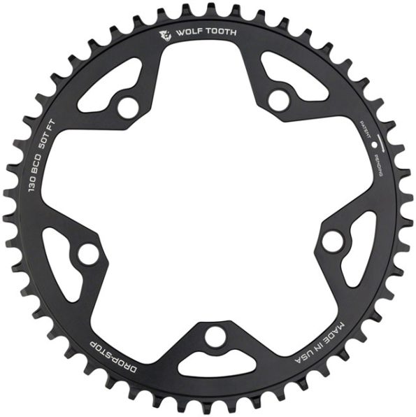 Wolf Tooth 130 BCD Road and Cyclocross Chainring – 52t, 130 BCD, 5-Bolt, Drop-Stop, 10/11/12-Speed Eagle and Flattop Compatible, Black